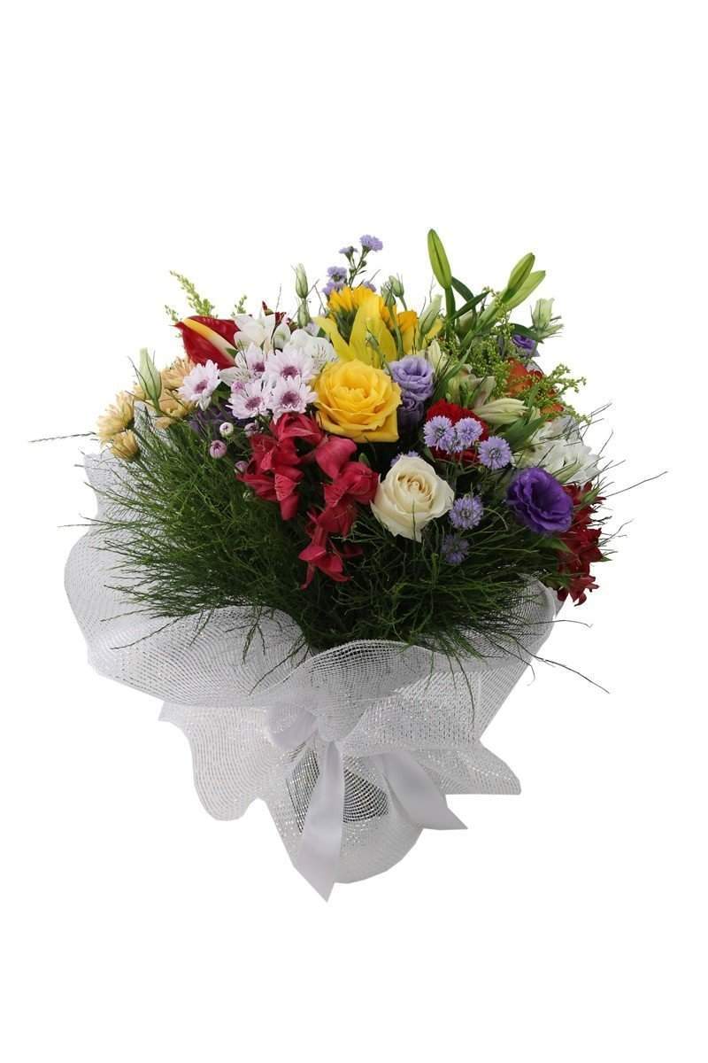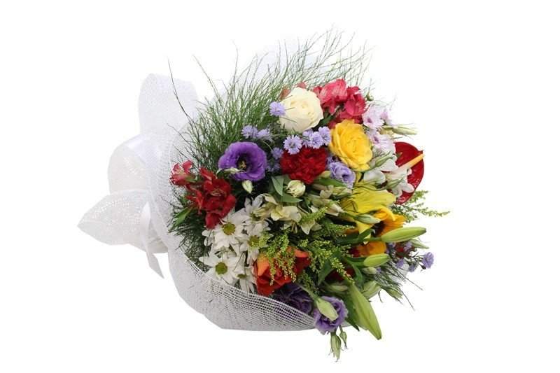 – Flores variadas e de diversas cores (lírios, callas, aster, cravos, rosas, gérberas, alstroemérias, lisianthus, tango e outras flores da época)