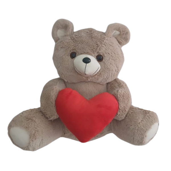 150188 – Urso Dengo nas cores areia ou mel com coração (42cm de altura, 30cm de comprimento).